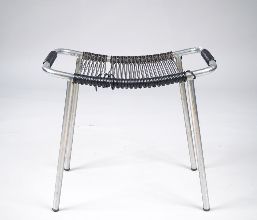 Tabouret scoubidou années 60 en plastique noir et métal chromé.