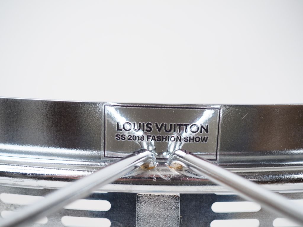 TERUAKI OHASHI (attribué à) pour Louis VUITTON Fashion Show 2018, Paris. Paire de tabourets curule en métal chromé Dim. 48 x 30 cm portent l'étiquette Louis Vuitton