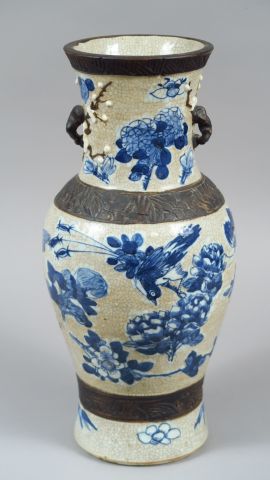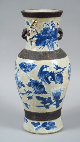 Lot de Vase en céramique de Nankin, décor en camaïeu bleu sur fond craquelé au prix de 80 à 100 € en vente aux enchères par l'hôtel des ventes Primardeco