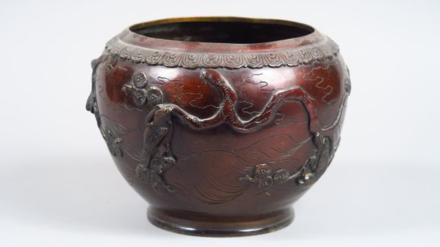 Lot de Vase Extrême-Orient en bronze à décor d’oiseaux branchés. H. : 19 c au prix de 80 à 100 € en vente aux enchères par l'hôtel des ventes Primardeco