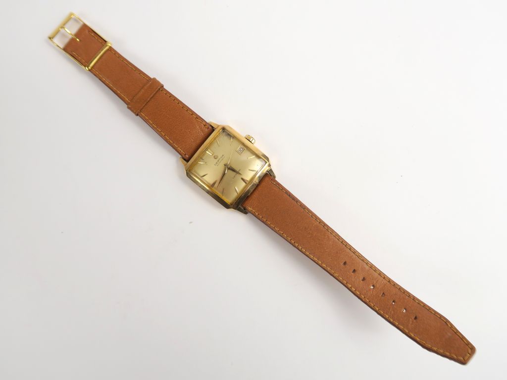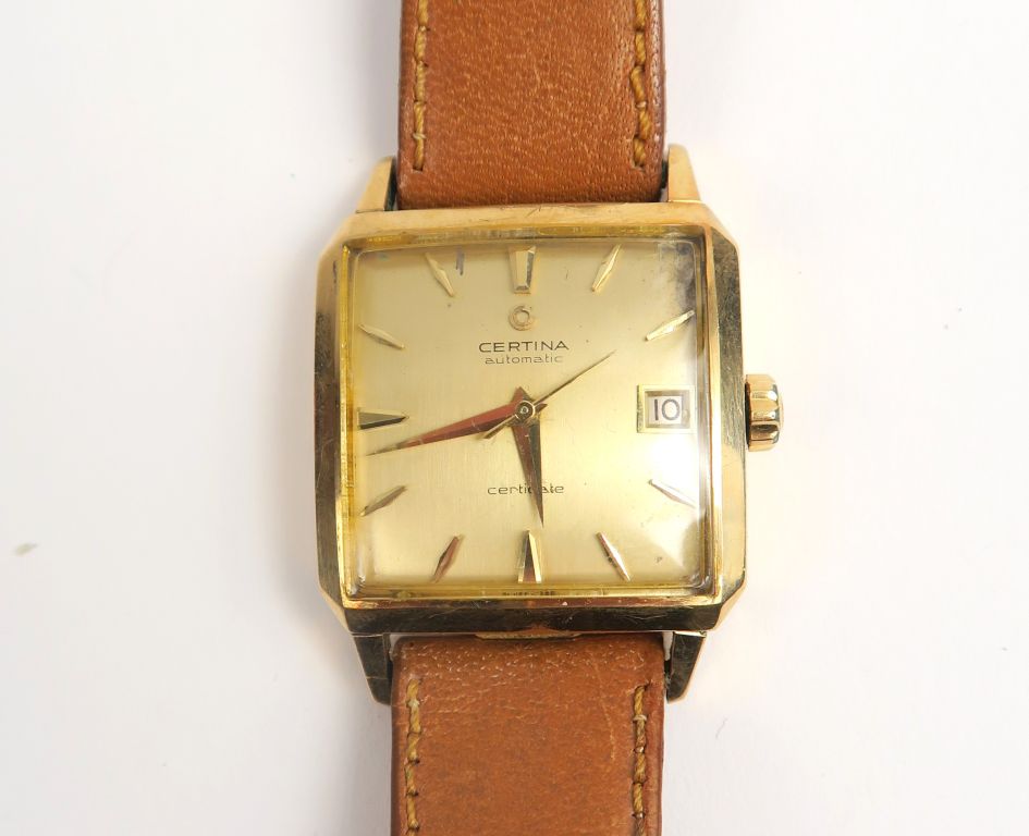 CERTINA. Montre bracelet, boitier en or, bracelet cuir et métal doré. Poids tel : 44 g