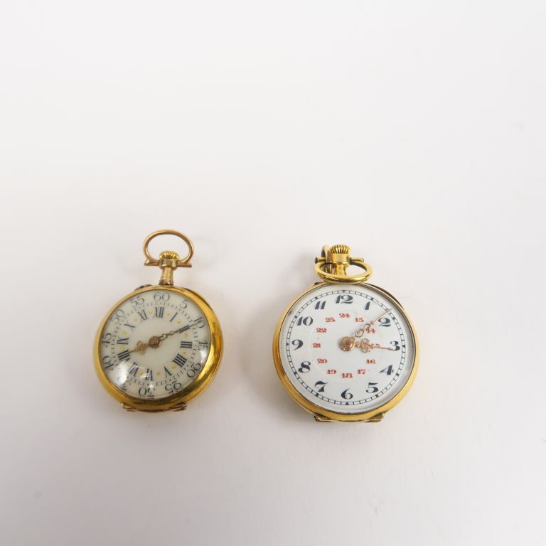 Deux montres de col en or jaune. Poids tel. 24 g