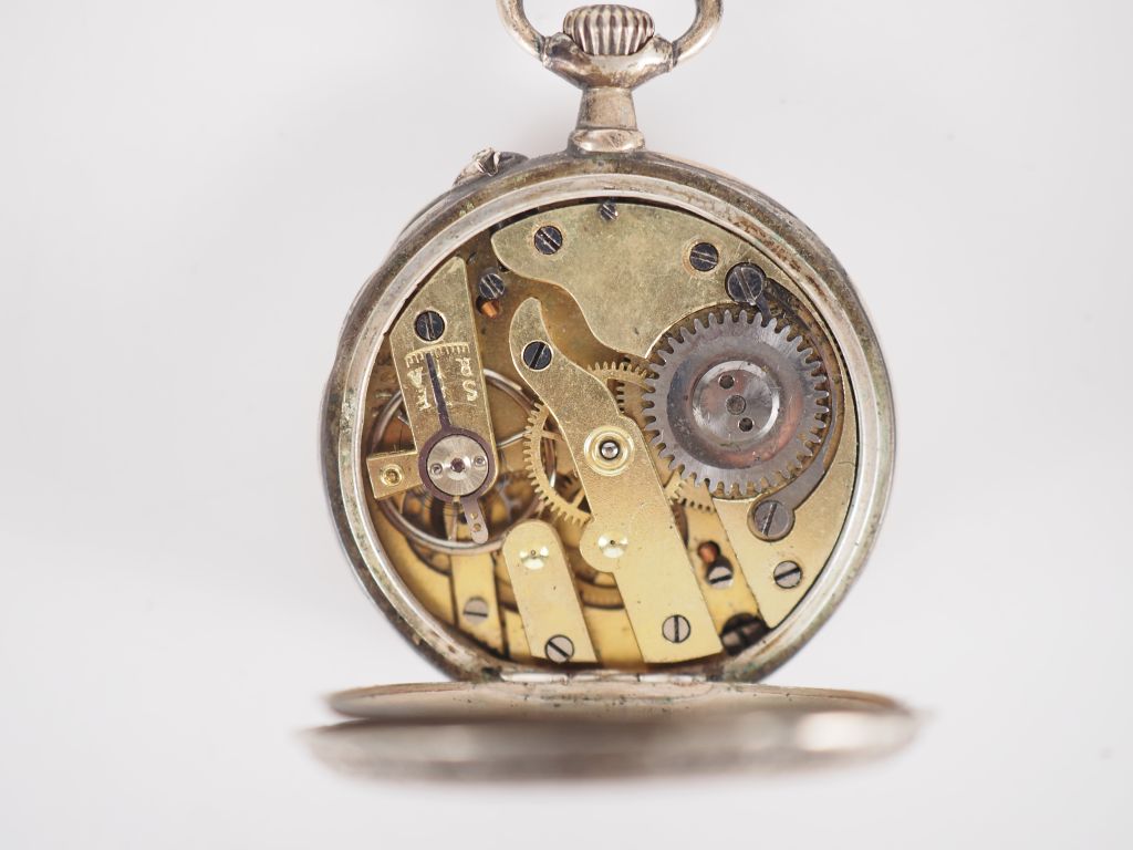 Ensemble comprenant : - une montre de col en argent. Cadran à chiffr...