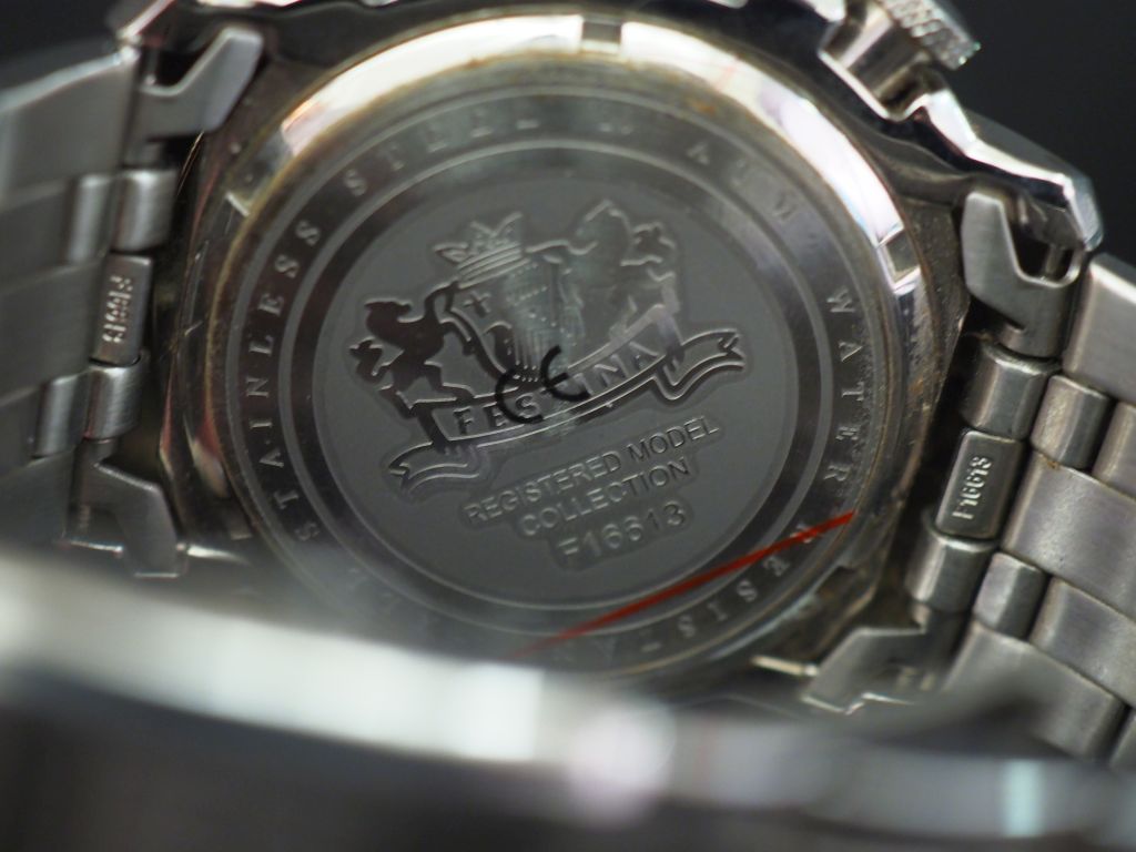FESTINA Montre bracelet d'homme en acier. Cadran rond à deux compteurs et guichet dateur à 6h. Bracelet articulé en acier à boucle déployante. Signée.