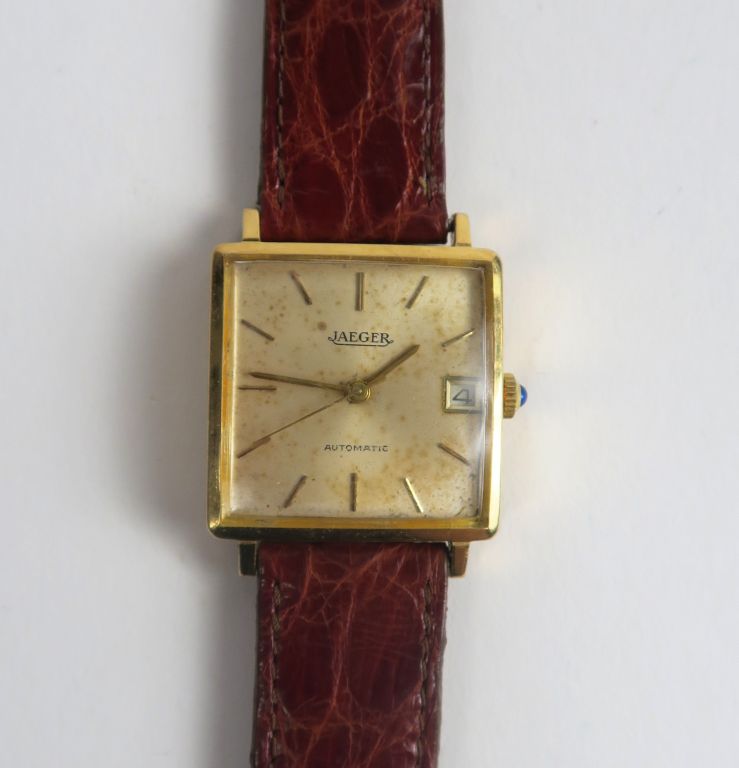 JAEGER. Montre d'homme, boitier en or de forme rectangulaire. Poids tel : 37,7 g