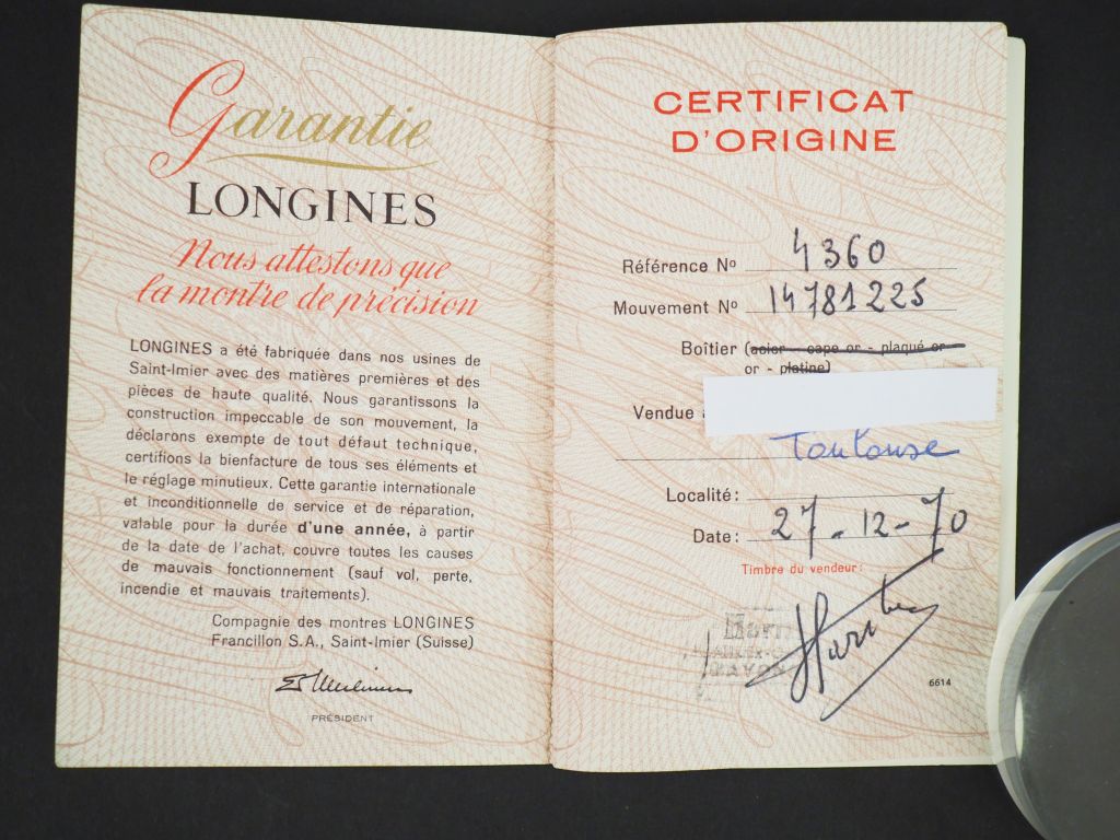 LONGINES. Montre de dame, boitier et bracelet or. Poids tel. 40 g avec son certificat d'origine.