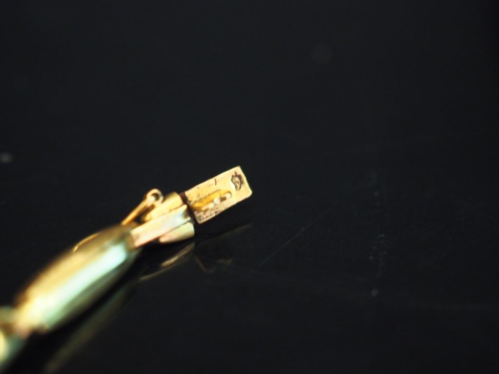 Montre bracelet de dame, boitier et bracelet en or jaune. Cadran octogonale à chiffres arabes pour les heures. Bracelet articulé. Long. 16 cm Poids tel. 14,69 g (petites usures)