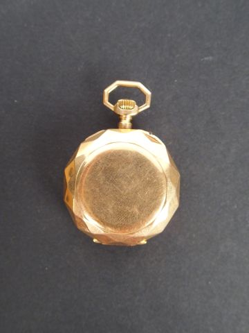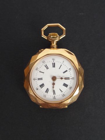 Montre de col en or jaune à pans coupés, cadran émail. Poids tel: 24,8gr