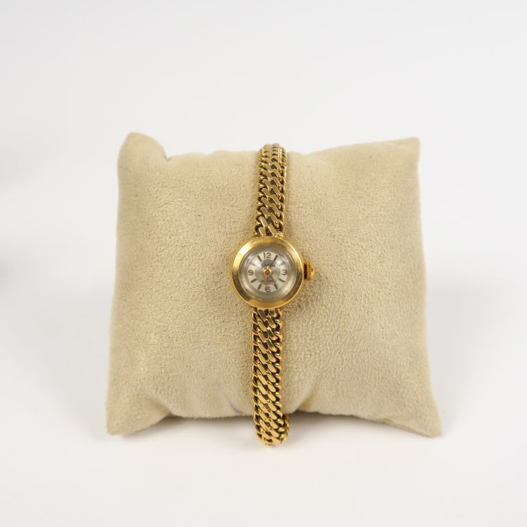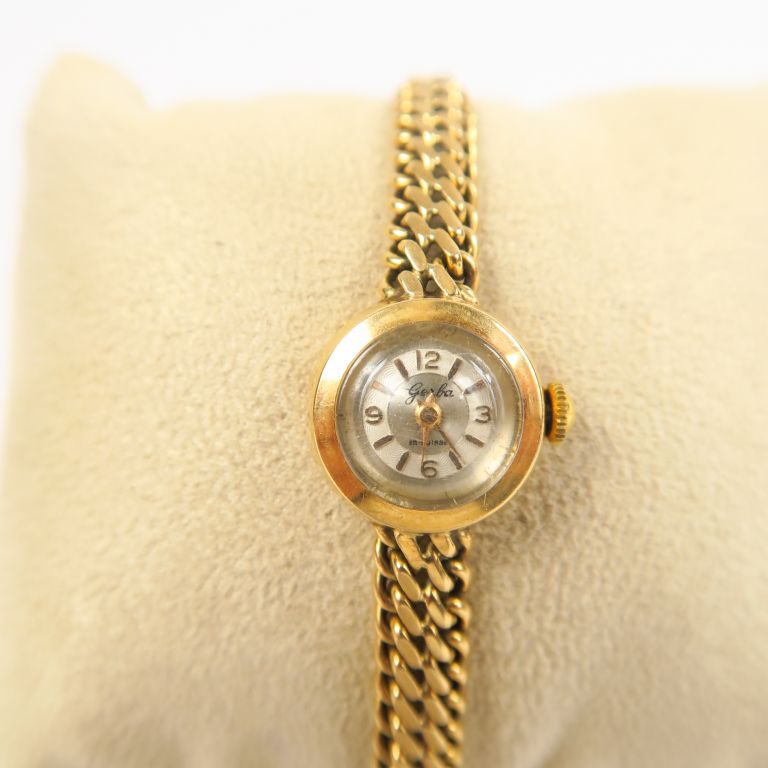 Montre de dame bracelet souple et boitier en or jaune. Cadran signé Gerba. Poids tel. 25,58 g