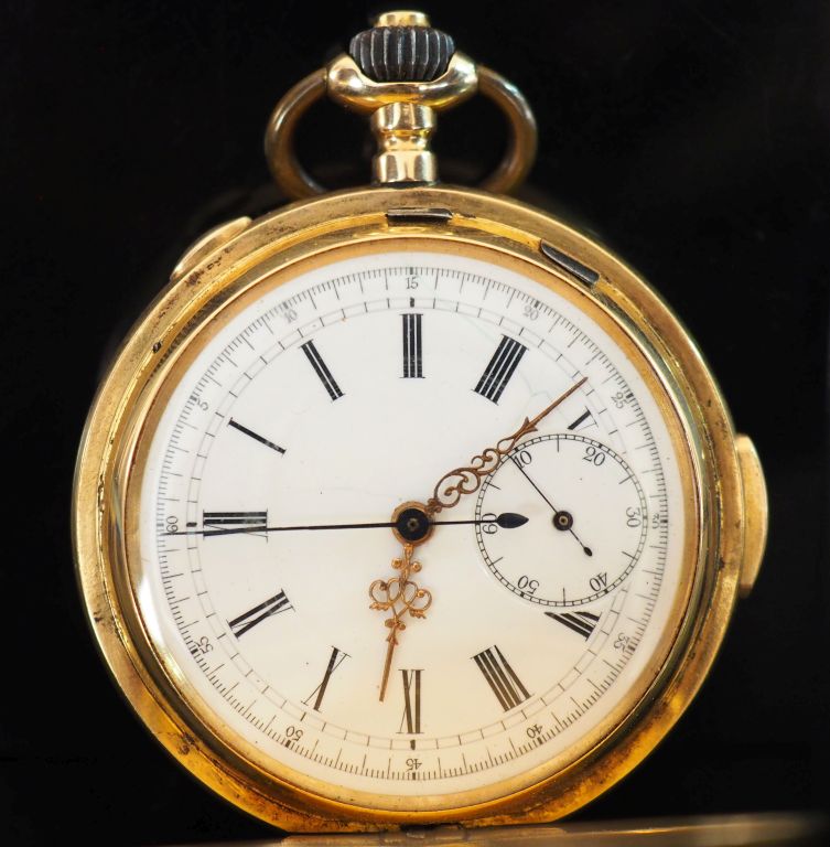 Montre de gousset aveugle en or jaune 750. Cadran à chiffres romains pour les heures et arabes pour les minutes. Compteur pour les secondes à 6h. Diam. 52 mm Poids tel. 88,75 g (petits enfoncements, bélière en métal)