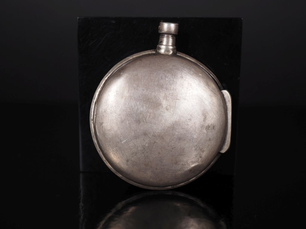 Montre de gousset en argent. Cadran émaillé à chiffres arabes pour les heures et chemin de fer pour les minutes. Diam. 60 mm Poids tel. 113 g (petits manques et accidents)