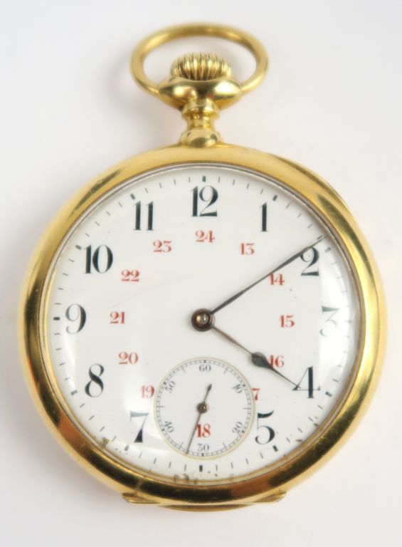 Montre de gousset en or, cadran des secondes. Poids tel : 96 g (cadran rayé)
