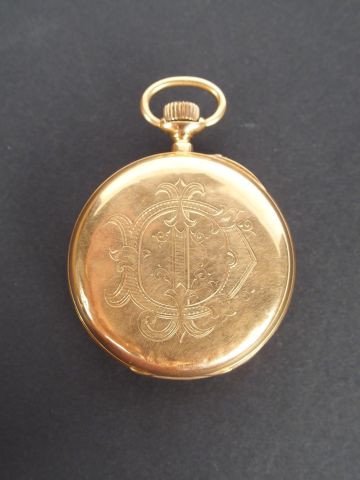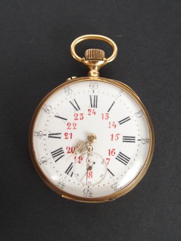 Montre de gousset en or jaune, cadran émail, chronomètre. Poids tel: 72gr