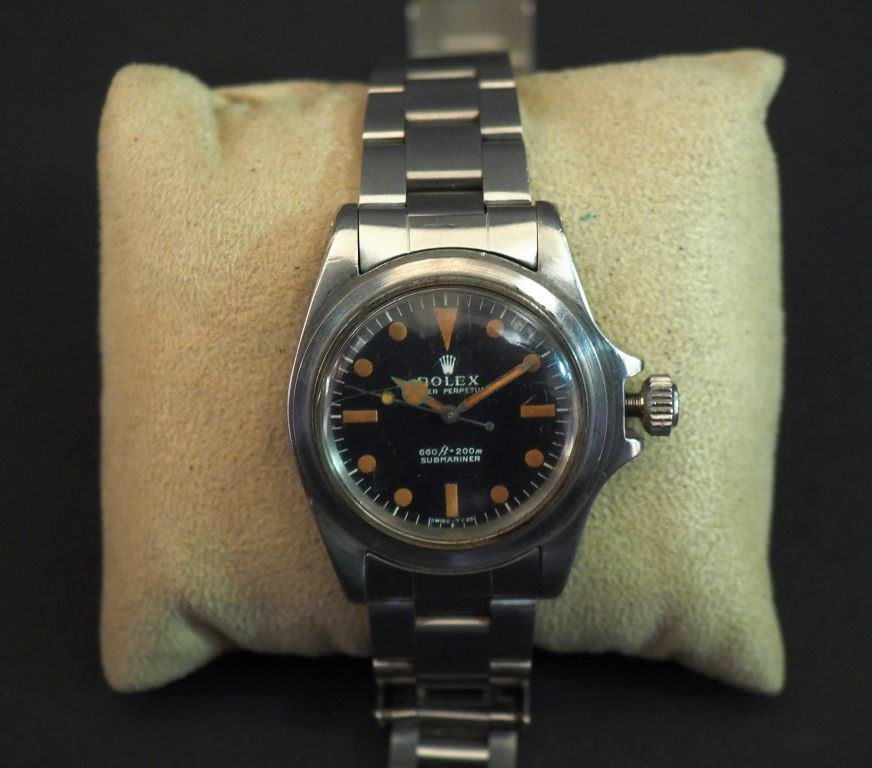 ROLEX, Submariner Ref. 5513 No. 2553097 Montre bracelet de plongée en acier . Boîtier rond, fond vissé gravé « I.70 » à l'intérieur. Cadran patiné dit “tropical” avec trotteuse centrale, minuterie chemin de fer. Mouvement automatique. Calibre 1520. Bracelet Oyster en acier 93150 (End links 580) avec fermoir déployant (93150) signé. Diam. 39 mm Vendue en l’état, belle patine sur le cadran, lunette manquante, traces d’usures sur l’ensemble, prévoir un rhabillage complet, bracelet accidenté, sans garantie. Expert : Geoffroy Ader - Ader Watches.