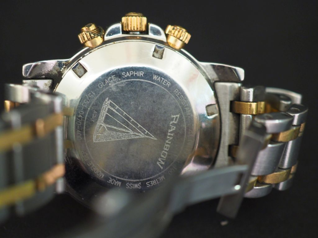 ZENITH, El Primero Montre bracelet d'homme Automatic en acier. Boitier à lunette graduée. Cadran à index pour les heures, trois sous compteurs sur fond bleu nuit. Guichet dateur entre 4h et 5h. Bracelet articulé en métal et métal doré, boucle déployante invisible. Signée. Diam. 38 mm (petits manques)