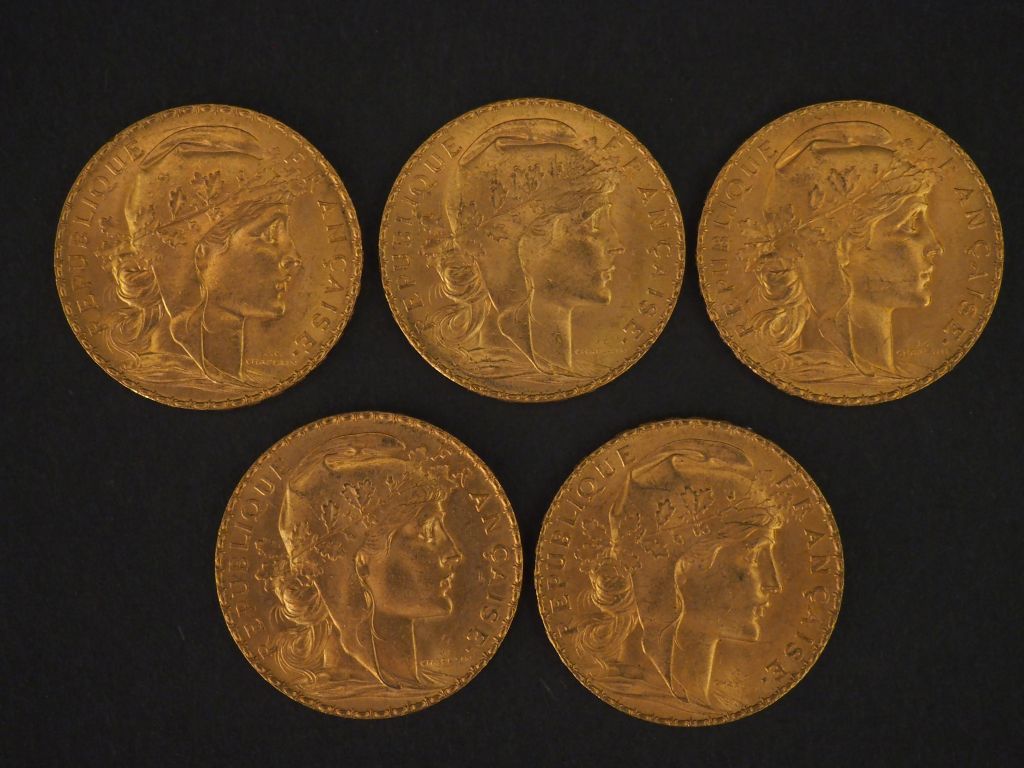 5 pièces de 20 Francs or, 1911 FRAIS ACHETEUR : 10 % HT