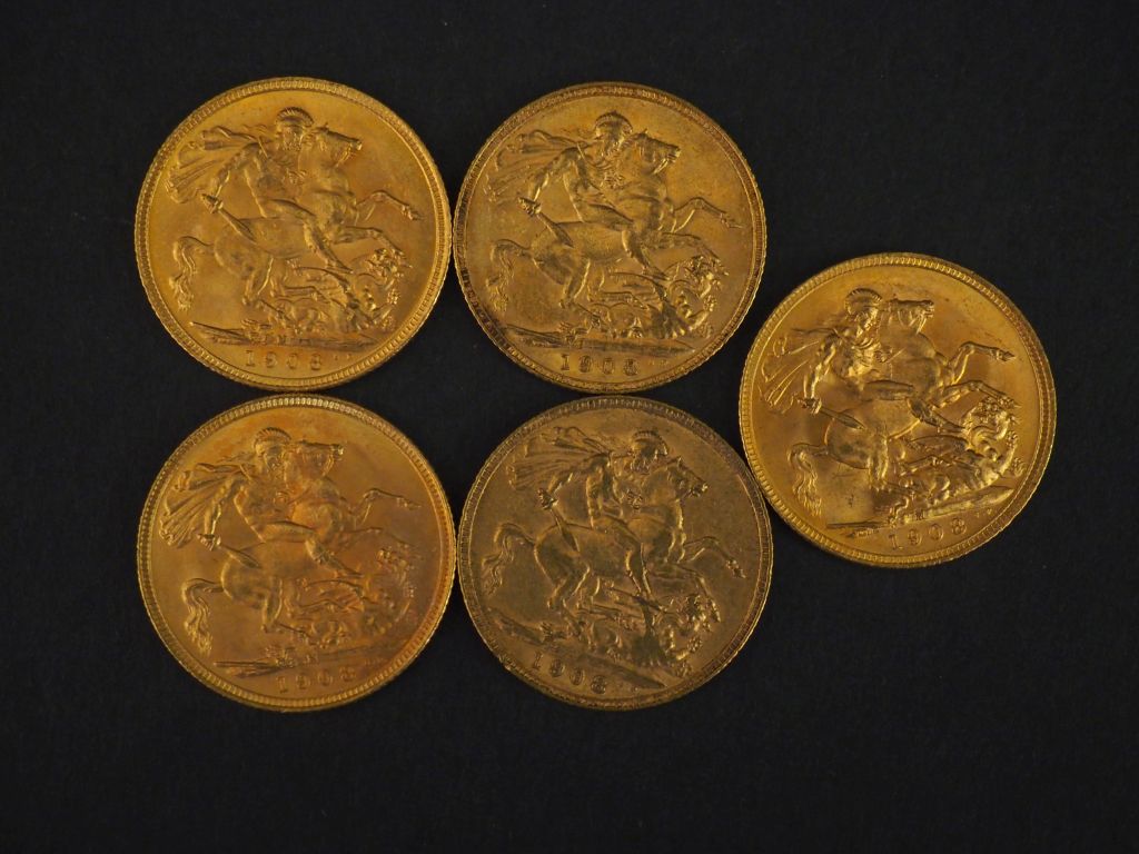 Cinq Souverains or, 1908. FRAIS ACHETEURS 10% HT.