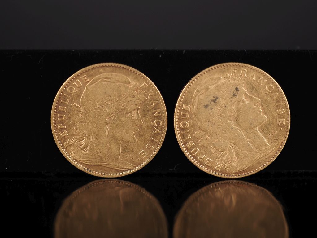 Deux pièces de 10 Francs or, 1905 et 1906. FRAIS ACHETEURS 10% HT.
