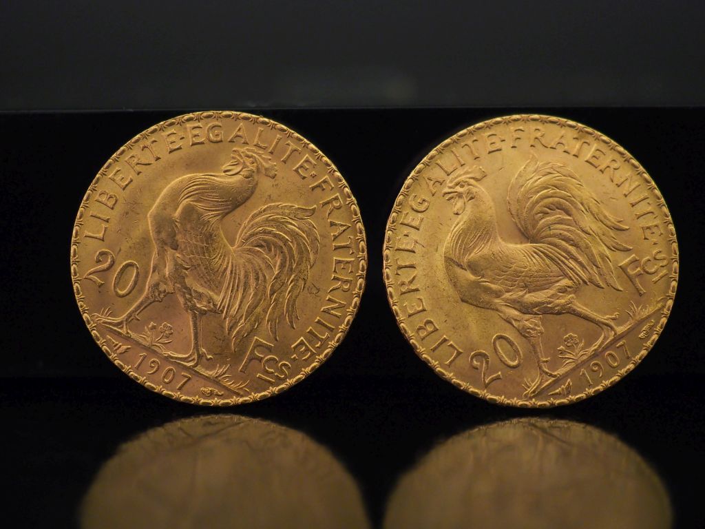 Deux pièces de 20 Francs or, 1907. FRAIS ACHETEURS 10% HT.