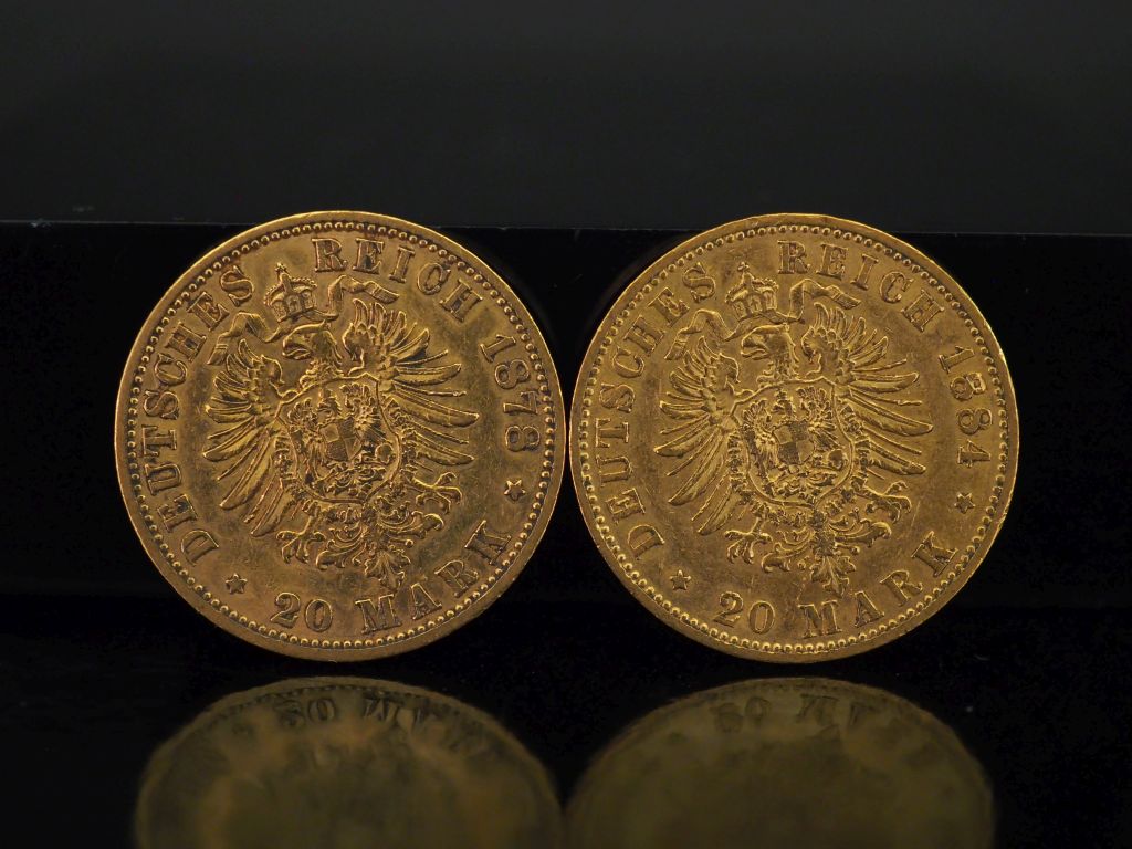 Deux pièces de 20 Mark or, 1878 et 1884. FRAIS AHCETEURS 10% HT.