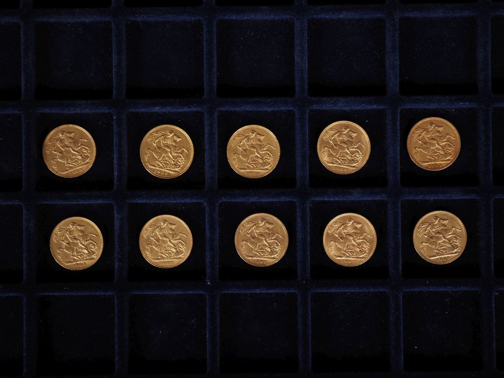 Dix souverains or, 1905 (x3), 1907, 1908 (x3), 1909 (x3). FRAIS ACHETEURS 10% HT.