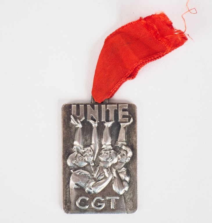 Médaille en métal argenté "Unité CGT/Témoignage de fidélité aux vieux syndiqués".