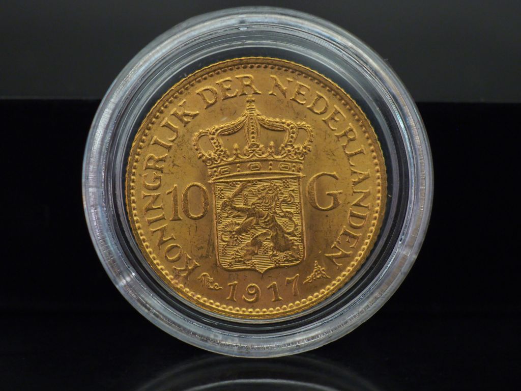 Pièce de 10 Gulden or, Wilhelmine des Pays-Bas, 1917. FRAIS ACHETEURS 5% TTC.