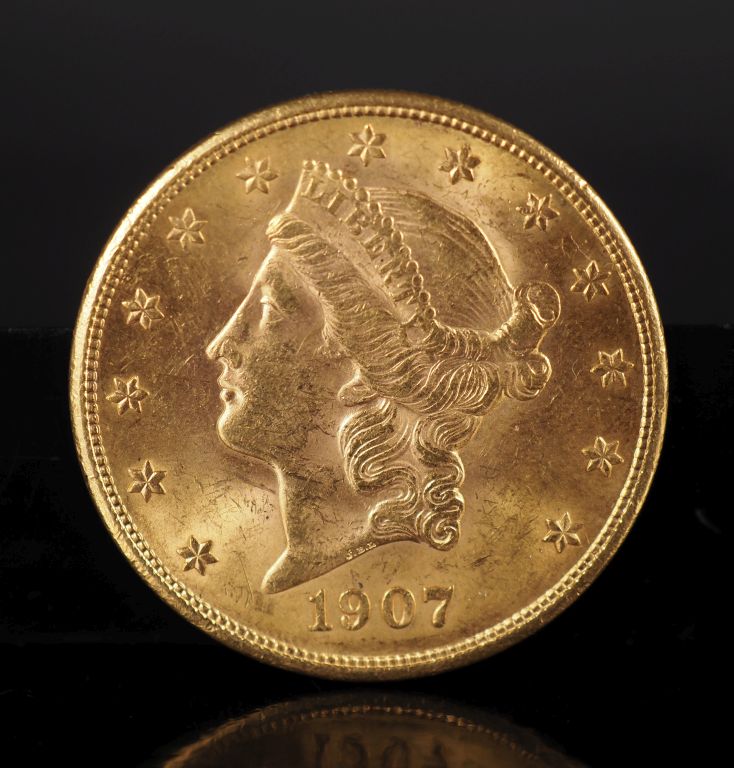 Pièce de 20 Dollars or, 1907. FRAIS ACHETEURS 5% TTC.