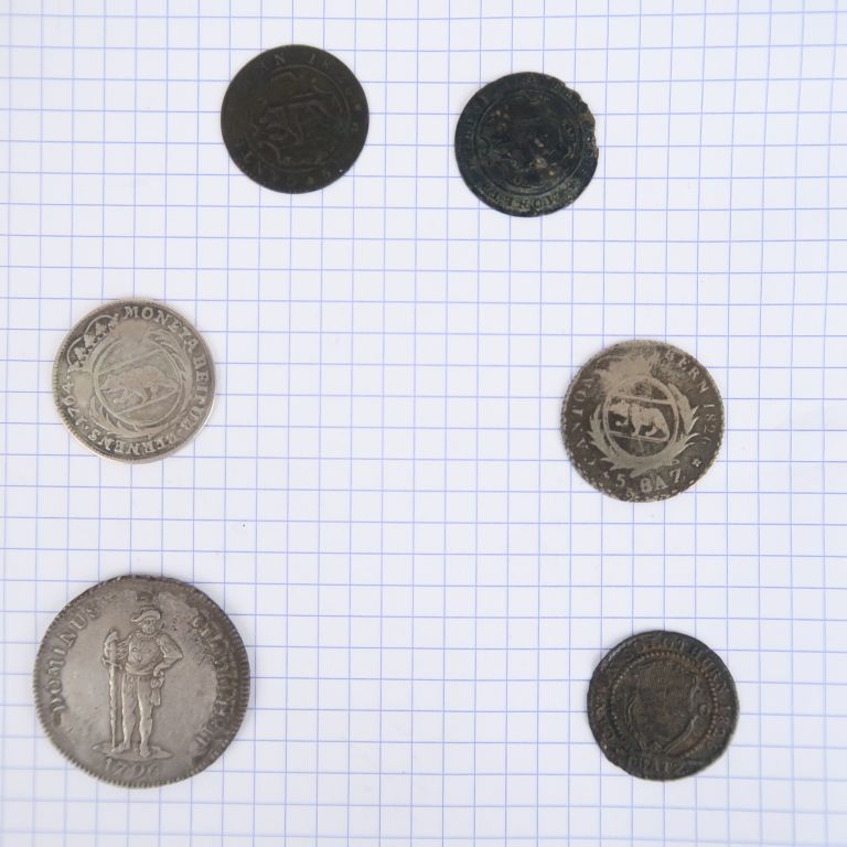Suisse, Berne et Soleure, lot de six monnaies : 5 rappen 1826, 20 Kreuzer 1764, ½, 1 et 5 batzen 1785 et 1826, ½ thaler 1796. B-TB.