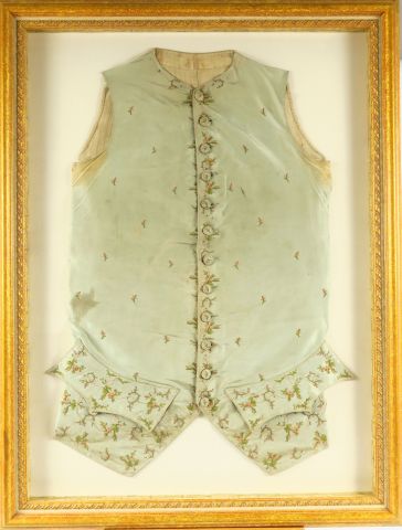 Lot de 3 gilets Louis XVI en soie brodée, encadrés au prix de à € en vente aux enchères par l'hôtel des ventes Primardeco