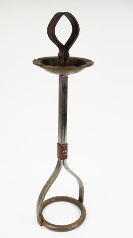 Lot de ADNET (Attribué à). Cendrier sur pied en fer et cuir. H. 68 cm au prix de 100 à 200 € en vente aux enchères par l'hôtel des ventes Primardeco
