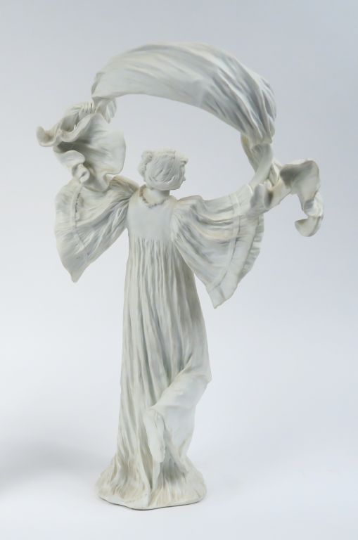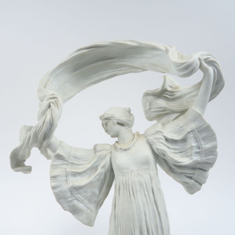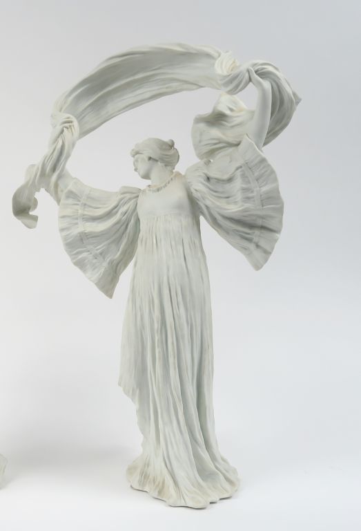 Agathon LEONARD "Danseuse à l'écharpe" Sujet en biscuit de Sèvres. Porte la marque de la manufacture, datée 1985. H. 52 cm (accident et restauration)