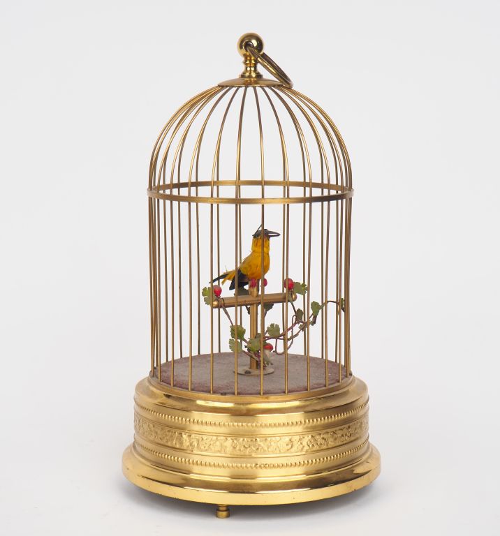 AU NAIN BLEU. Automate musical allemand "oiseau chanteur". H. 29 cm. (En état de fonctionnement).