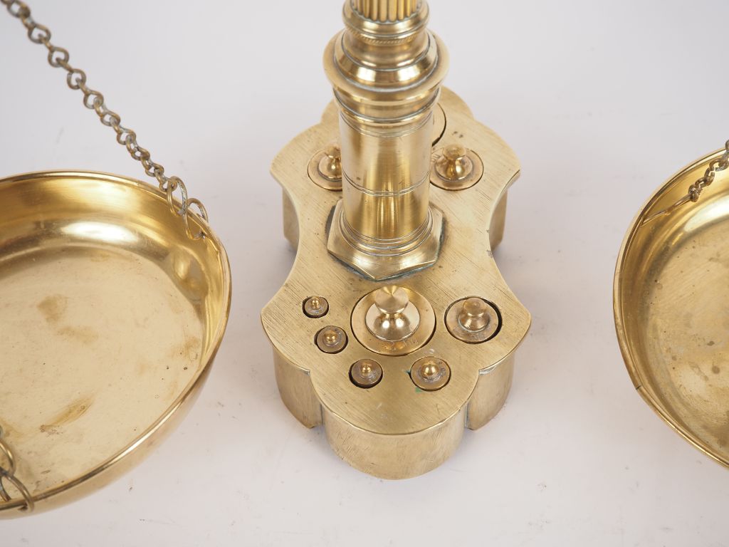 Balance de cuisine en bronze et laiton à décor de tête de bœuf. H. 60 ...