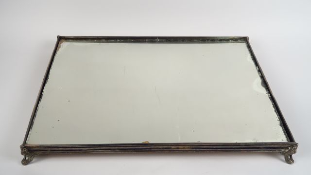 Centre de table à fond de glace monture en métal argenté de style Louis XV. 49,5 x 38,5 cm