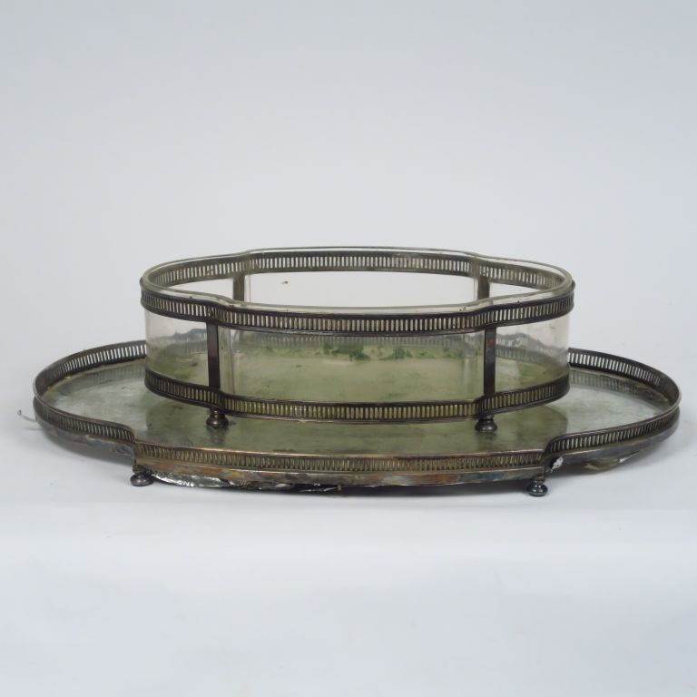 Centre de table de style Louis XVI et son présentoir en cristal et argent. (petits accidents)