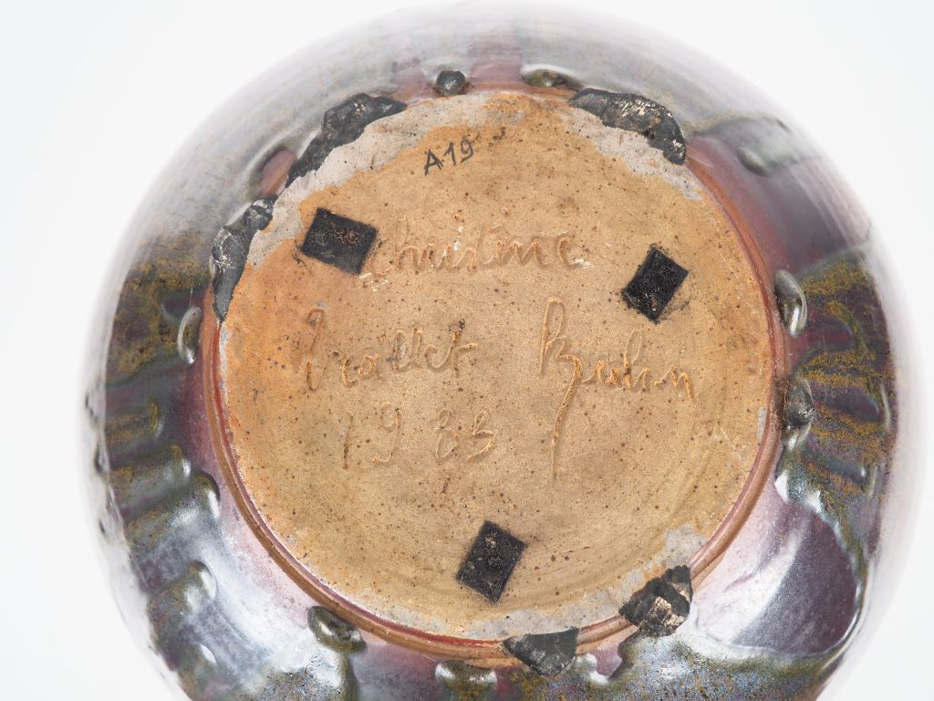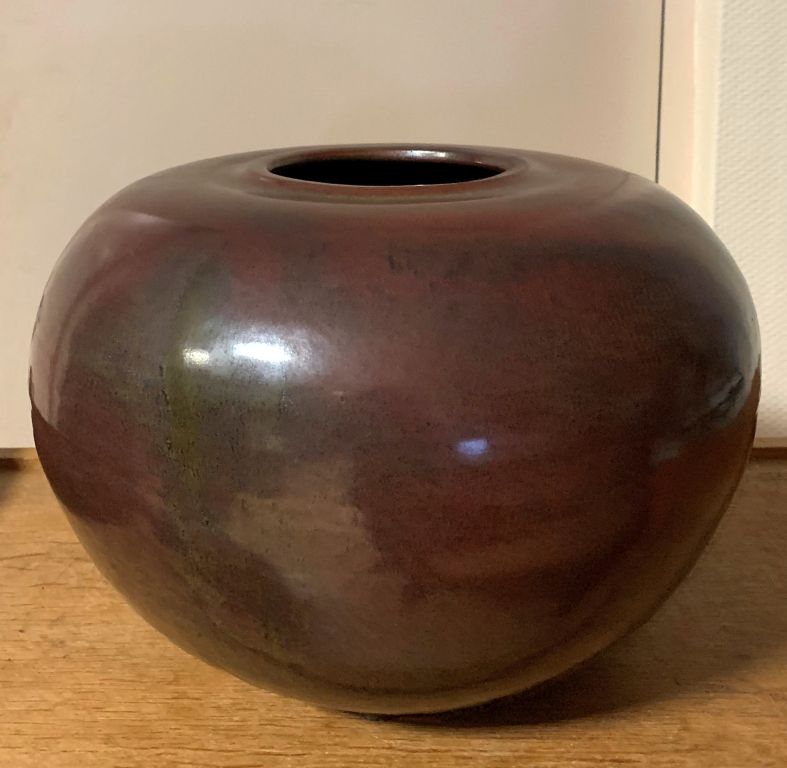 Chrisitine VIALLET KUHN. Grand vase ovoide en grès rouge moucheté. Signé et daté 83 H. 28 cm
