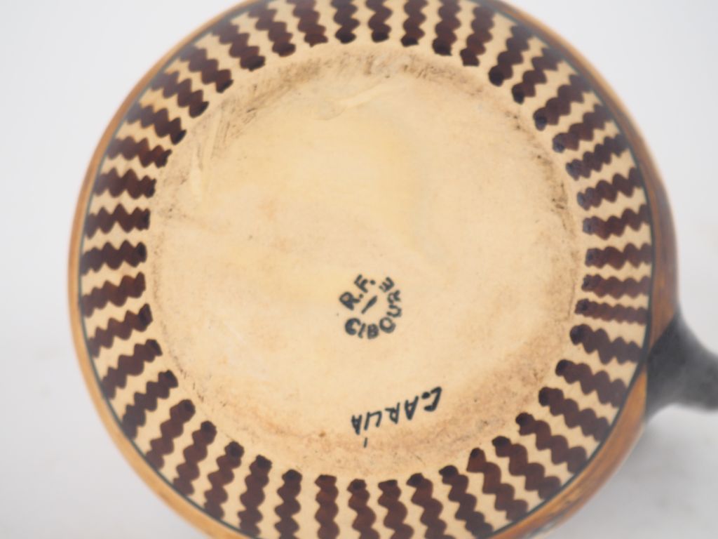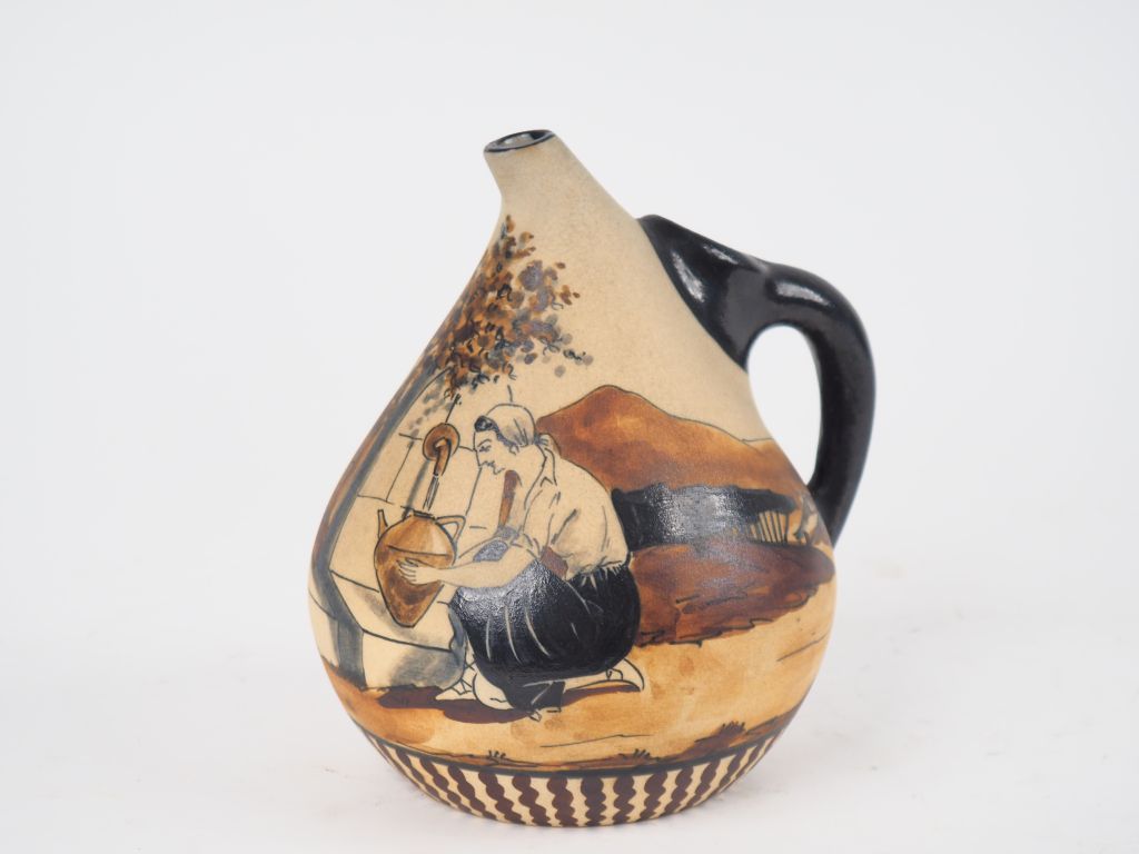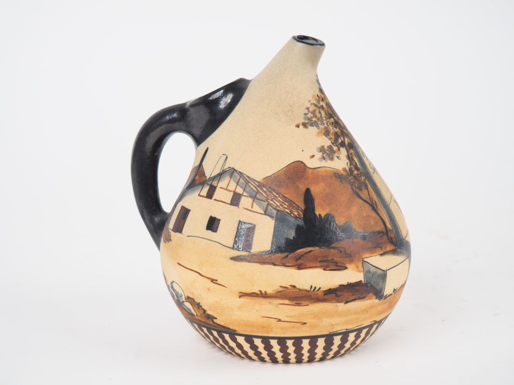 CIBOURE. Pichet en céramique à décor de paysanne à la fontaine. Signé Garcia RF. CIBOURE H. 19 cm