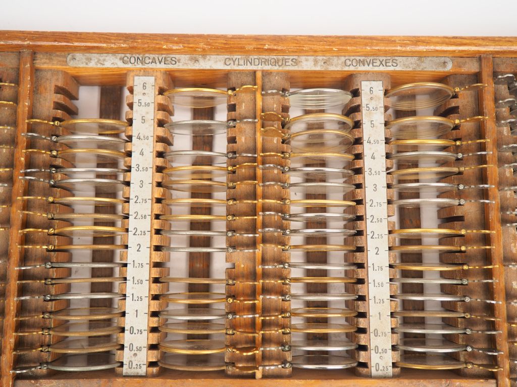 Coffret d'ophtalmologie début XXème composé de 186 "lentilles" (sur 2...