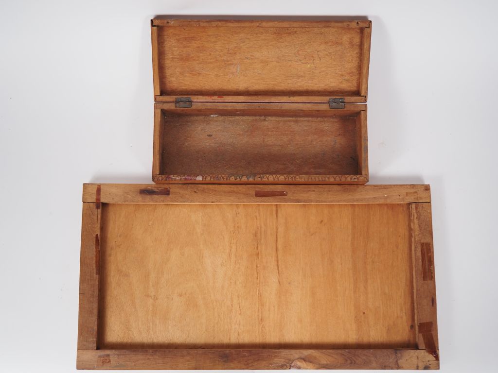Coffret et cadre en marqueterie, "le labeur au champ". Dim. 8 x 38 x 14 cm. Dim. 32,5 x 63 cm.