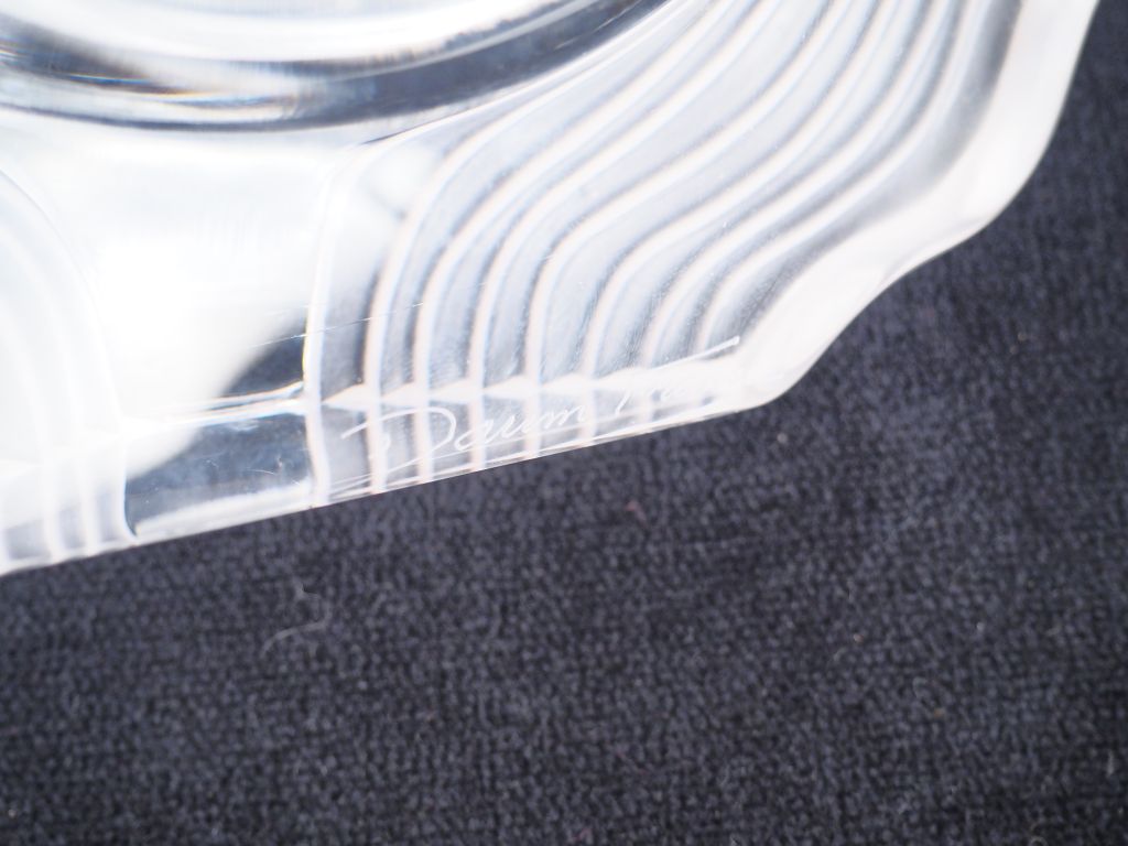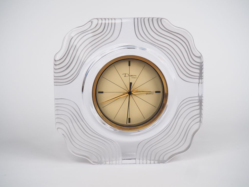 DAUM France. Réveil en cristal moulé en partie sablé. Signé. Dim.19 x 19,5 x 5,3 cm.
