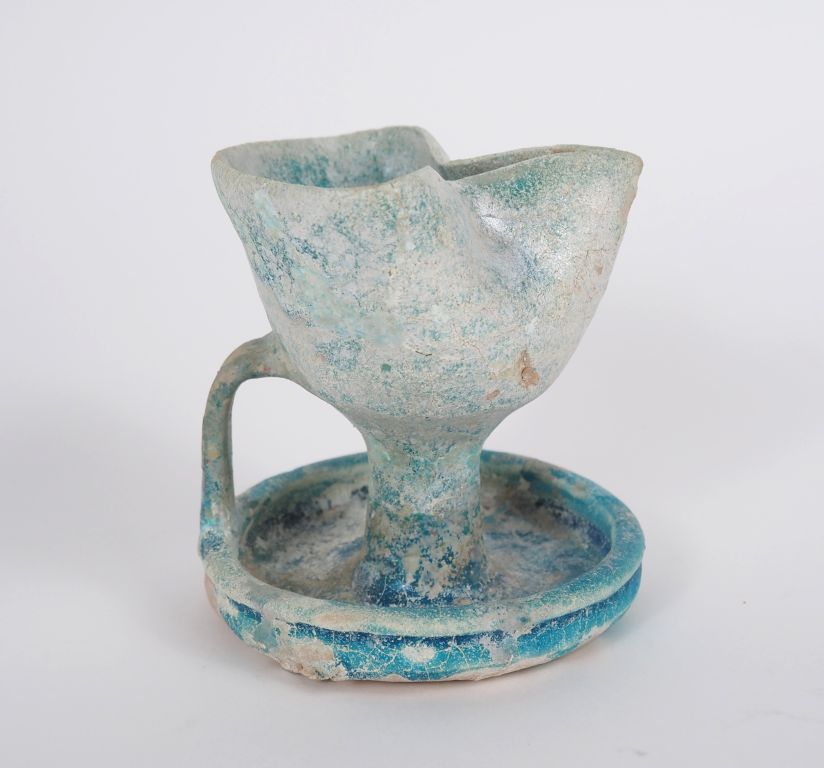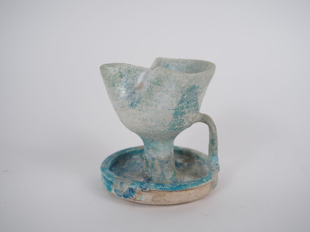 Égypte, XV-XVIe s. apr. J.-C. Lampe islamique à glaçure turquoise. 9 cm Expert : Jean-Sylvain Caillou, EI.