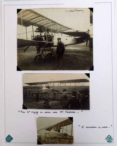 Ensemble de 17 photographies 'Portraits de pilotes' et 'Avions' dont Farman, Geo Chemet, Legagneux, Renaux et divers sujets