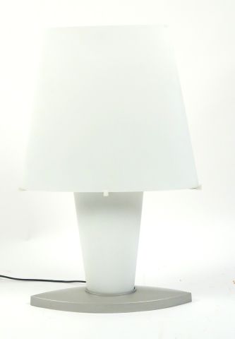 FONTANA ARTE. Daniela Puppa. Lampe de table en verre blanc moulé, socle en métal. 1994
