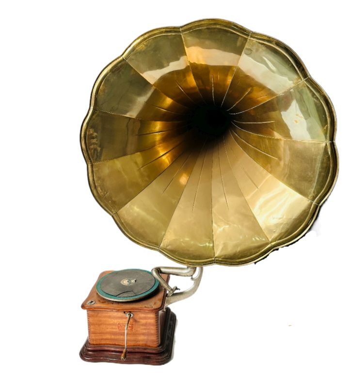 FONTANON. Spectaculaire radiophone avec son pavillon. H. totale avec le pavillon : environ 160 cm Diam. du pavillon : 100,5 cm