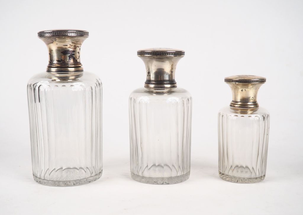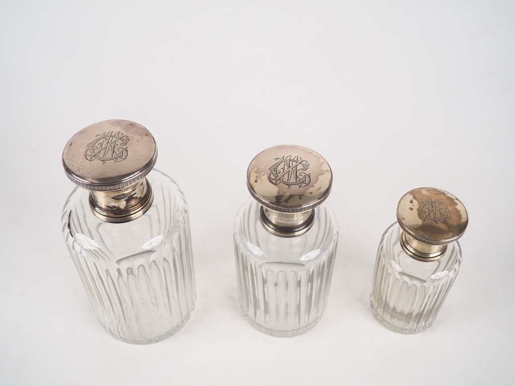 Garniture de toilette en cristal et argent, à décor de cannelures et de monogramme.