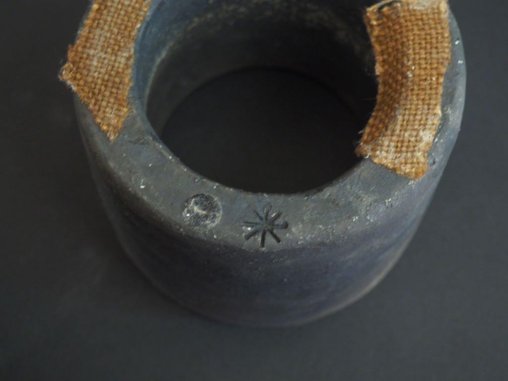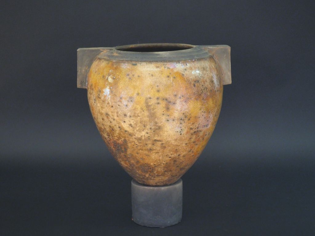Gisèle BUTHOD-GARÇON. Vase en grés raku émaillé et craquelé beige. Signé du monogramme de l'artiste. H. 35 cm
