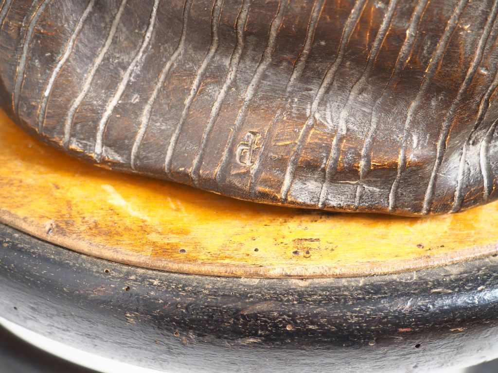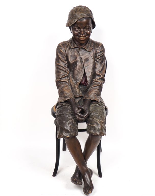 GOLDSCHEIDER. Exceptionnelle et grande sculpture grandeur nature en stuc polychrome. "jeune joueur de cricket noir américain" H. 120 cm (un doigt cassé, recollé)