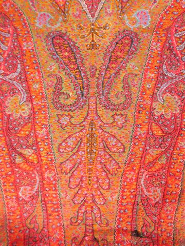 Lot de Grand châle indien XIXème en cachemire (troué) Dim. 305 x 140 cm au prix de 100 à 150 € en vente aux enchères par l'hôtel des ventes Primardeco