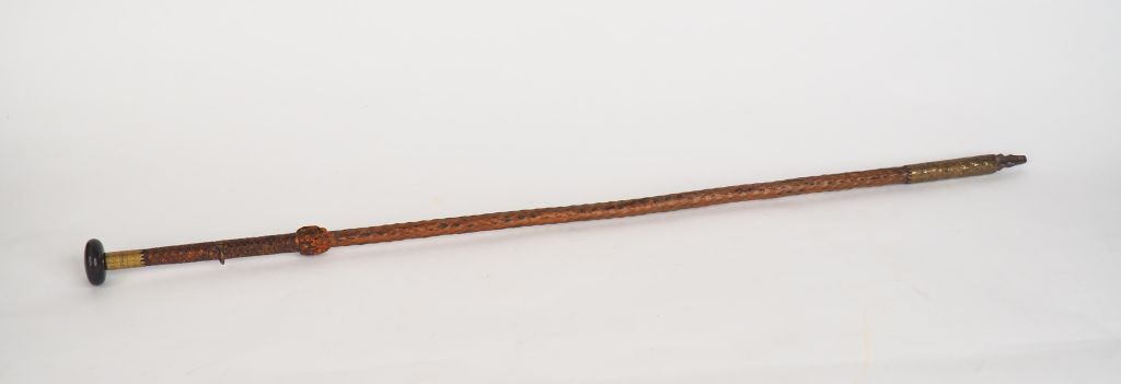 Deux différentes cannes XIXème, l'une pommeau en or, à décor de monogr lot n°1 Estimation : 60 - 80 €
